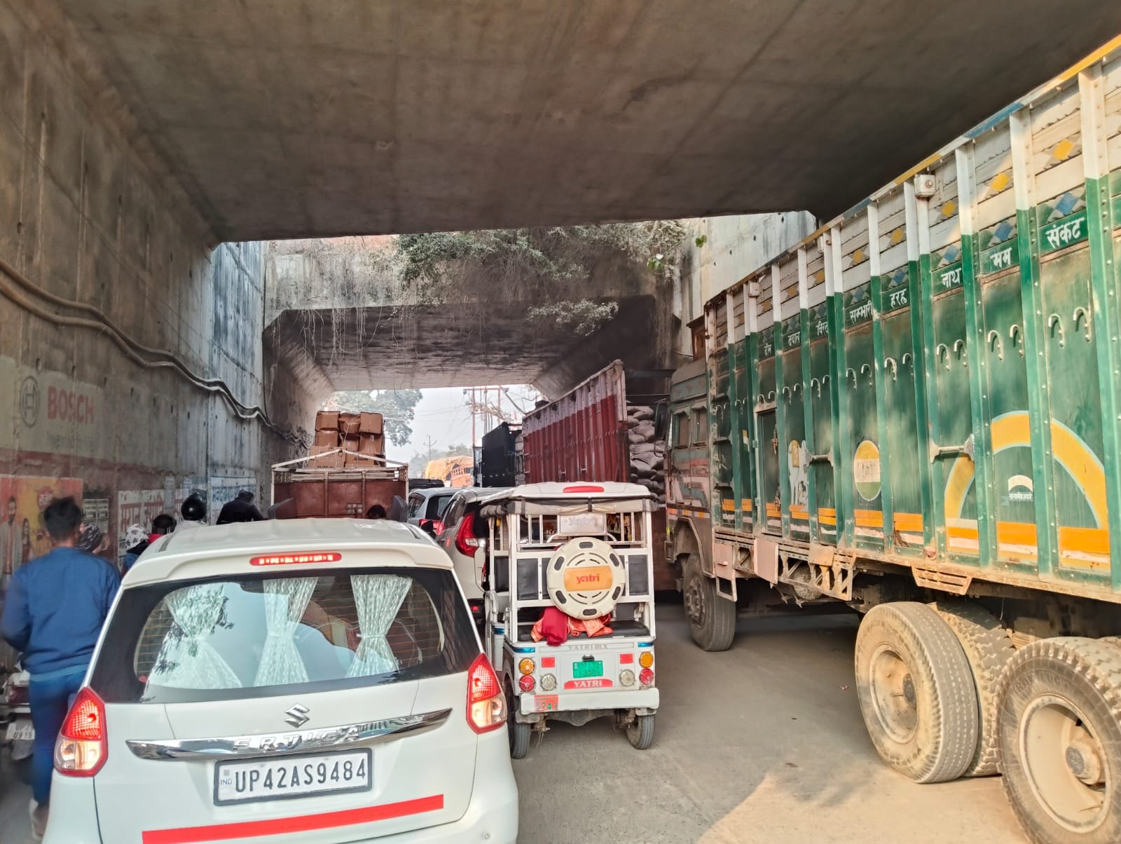 गद्दोपुर एफसीआई गोदाम पर बेतरतीब ट्रकों को लगाने से स्थिति बेहद गंभीर।