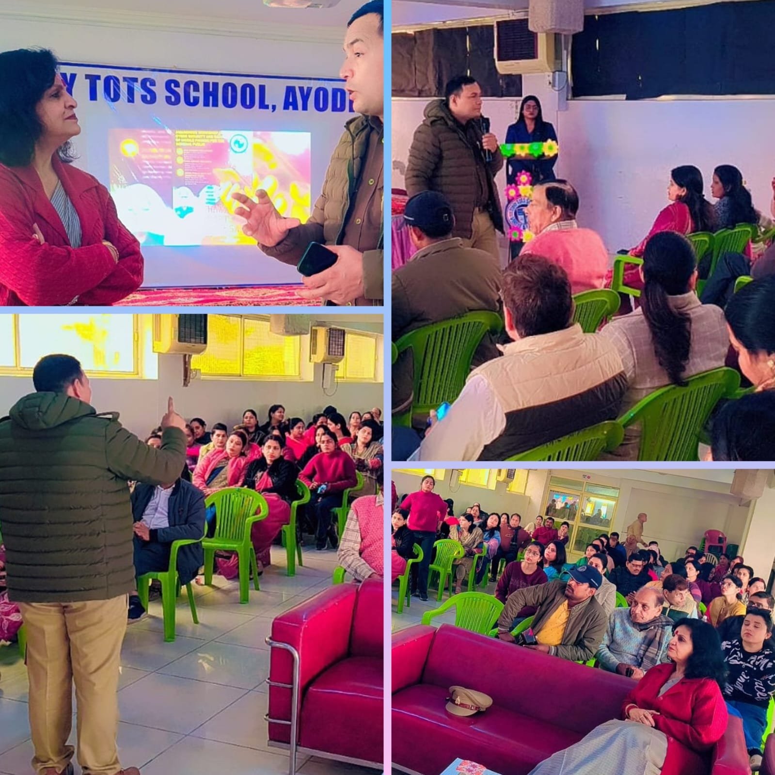 कार्यशाला के मुख्य वक्ता श्री ओम प्रकाश यादव ( सब इंस्पेक्टर साइबर सेल अयोध्या ) ने साइबर अपराधों के प्रकार, जैसे फिशिंग, हैकिंग, फर्जी लिंक, ओटीपी धोखाधड़ी आदि के बारे में विस्तार से बताया। उन्होंने मजबूत पासवर्ड बनाने, सोशल मीडिया पर निजी जानकारी साझा न करने तथा अनजान कॉल और संदेशों से सतर्क रहने की सलाह दी। इस अवसर पर उपस्थित अभिभावकों को वास्तविक उदाहरणों के माध्यम से समझाया गया कि थोड़ी-सी सावधानी से बड़े साइबर नुकसान से बचा जा सकता है। प्रश्नोत्तर सत्र में उपस्थित लोगों ने अपनी जिज्ञासाएँ साझा कीं, जिनका विशेषज्ञों द्वारा सरल भाषा में समाधान किया गया।
