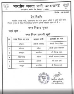उत्तराखंडभाजपा ने जारी किये मेयर प्रत्याशियों की सूची encountersamachar.in1 year ago1 year ago01 min भाजपा ने जारी किये मेयर प्रत्याशियों की सूची (संवाददाता एनकाउंटर समाचार) देहरादून। भाजपा ने मेयर पद के लिए 6 प्रत्याशियों की घोषणा कर दी है। प्रदेश मीडिया प्रभारी मनवीर सिंह चौहान ने कहा कि अन्य सीटों पर आज ही घोषणा कर दी जायेगी। पार्टी की ओर से नगर पालिका, नगर पंचायत और निगमों मे सभासदों की सूची जारी कर दी गयी है। देखिए लिस्ट Post navigation Previous: संजय श्रीवास्तव गणेश शंकर विद्यार्थी स्मृति सम्मान से नवाजे नवाजे गएNext: SSP देहरादून की सटीक रणनीति, कोबरा गैंग की कमर तोड़ती दून पुलिस, शातिर विदेशी पैडलर गिरफ्तार Leave a Reply Cancel replyYour email address will not be published. Required fields are marked *Comment * Name * Email * Website Save my name, email, and website in this browser for the next time I comment.