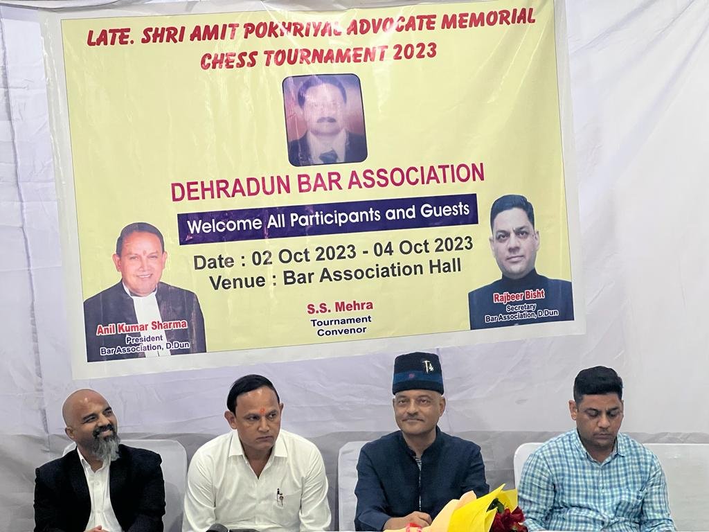 देहरादून। बार एसोसिएशन द्वारा आयोजित की जा रही स्वर्गीय अमित पोखरियाल एडवोकेट मेमोरियल अधिवक्ताओं की शतरंज प्रतियोगिता के दूसरे दिन मुख्य अतिथि युथफाउंडेशन के पूर्व कर्नल अजय कोठियाल तथा विशिष्ट अतिथि एडवोकेट अजय बिष्ट रहे।