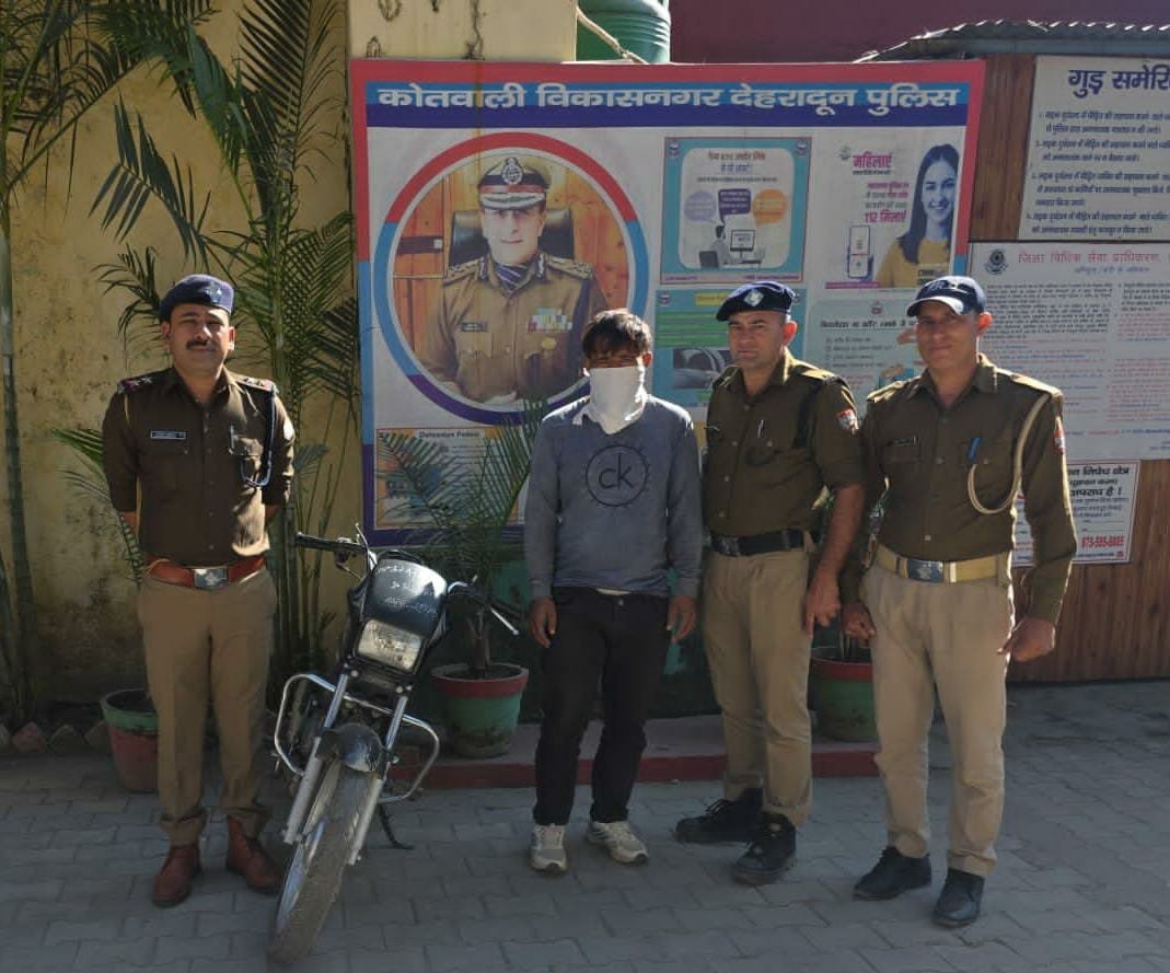 घटना के अनावरण तथा अभियुक्त की गिरफ्तारी हेतु वरिष्ठ पुलिस अधीक्षक, देहरादून द्वारा दिये गये निर्देशों के क्रम में कोतवाली विकासनगर स्तर पर पुलिस टीम का गठन किया गया, गठित टीम द्वारा घटना स्थल का निरीक्षण कर आस-पास तथा आने जाने वाले रास्तों पर लगे सीसीटीवी कैमरो की फुटेजों को चैक किया गया, साथ ही सुरागरसी/पतारसी करते हुए घटना में शामिल अभियुक्तों के संबंध में जानकारियां एकत्रित की गई। पुलिस टीम द्वारा किये जा रहे प्रयासों से दिनांक -12/11/2025 को रात्री में चैकिंग के दौरान पुलिस टीम द्वारा घटना को अजांम देने वाले अभियुुक्त सादिक उर्फ घुसपैठिया पुत्र नूर अली निवासी मगनपुरा थाना मिर्जापुर जनपद सहारनपुर को आदर्श विहार आम के बाग के पास से चोरी की गई मोटरसाइकिल स्प्लेन्डर के साथ गिरफ्तार किया गया। अभियुक्त शातिर किस्म का अपराधी है, जिसके विरूद्व अन्य राज्यो में चोरी, आर्म्स एक्ट के आधा दर्जन अभियोग पंजीकृत है।