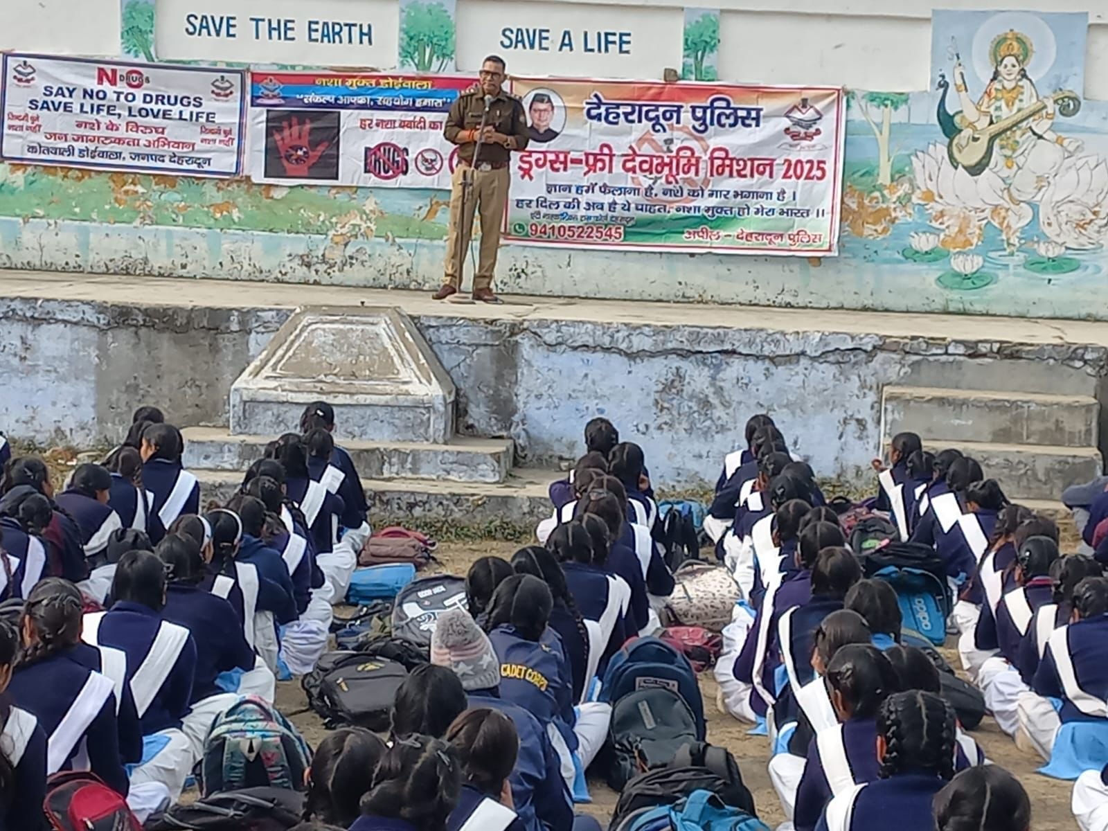 मा0 मुख्यमंत्री उत्तराखंड की “ड्रग फ्री देवभूमि 2025” की परिकल्पना को साकार किये जाने हेतु वरिष्ठ पुलिस अधीक्षक देहरादून के निर्देशानुसार नशे के विरूद्ध आमजन को जागरूक करने के उद्देश्य से पुलिस की चौपाल का आयोजन किया जा रहा है। इसी क्रम में आज दिनांक 30/12/23 को देहरादून के विभिन्न थाना क्षेत्र में पुलिस की चौपाल का आयोजन किया गया इस दौरान पुलिस द्वारा औधोगिक संस्थानों, शिक्षण संस्थानों, आदि स्थानों पर लोगों को नशे के दुष्प्रभावों के संबंध में जागरूक किया गया, साथ ही उपस्थित लोगो को थाना पुलिस व देहरादून ANTF टीम के नम्बर उक्त चौपाल के माध्यम से लोगो को उपलब्ध कराकर उन्हें अपने क्षेत्र में नशा तस्करी से संबंधित किसी भी सूचना को उक्त नंबरो पर देने हेतु अपील की गयी।