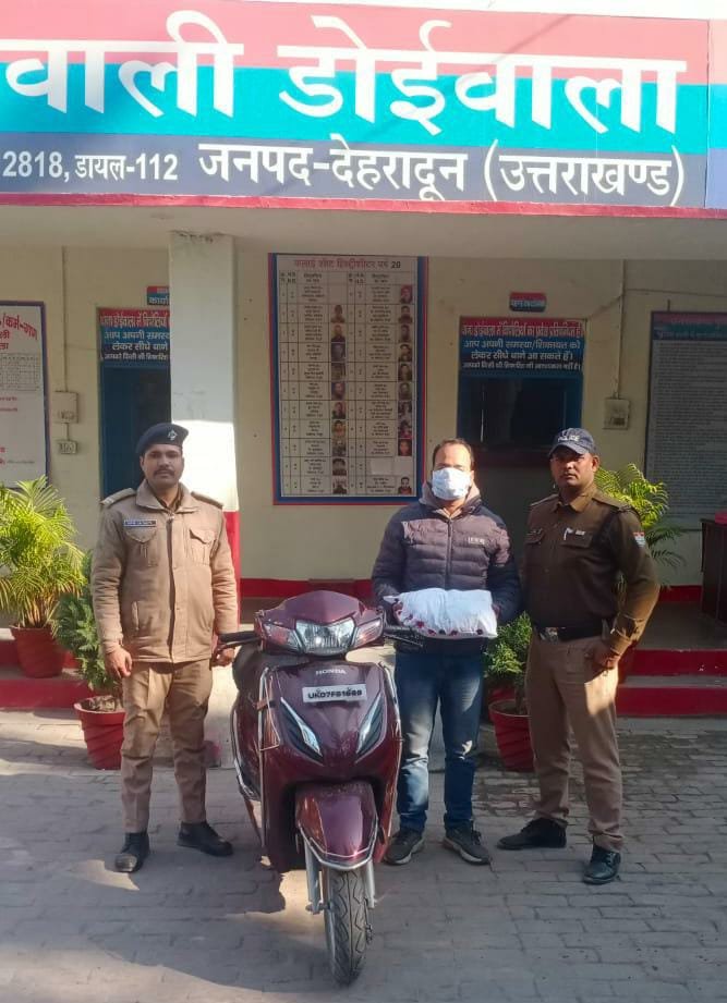 बीती 16-12-2024 को चैकिग के दौरान डोईवाला पुलिस द्वारा चौकी गेट लालतप्पड के पास से अभियुक्त सुमित बंसल पुत्र राकेश बंसल को स्कूटी सं0: यू0के0-07-एफएस-1689 से 01 किलो 640 ग्राम अवैध गांजे की तस्करी करते हुए गिरफ्तार किया गया। अभियुक्त के विरूद्ध एनडीपीएस एक्ट का अभियोग पंजीकृत किया गया। पूछताछ के दौरान अभियुक्त का पूर्व मे जिला मुज्जफरनगर के थाना नई मण्डी से आबकारी अधिनियम व गैगंस्टर एक्ट, थाना खतौली से आबकरी अधिनियम व थाना सिविल लाईन्स से वाहन चोरी व फर्जी आरसी/नम्बर प्लेट के अभियोग तथा थाना ऋषिकेश से आबकारी अधिनियम जेल जाना प्रकाश में आया है।